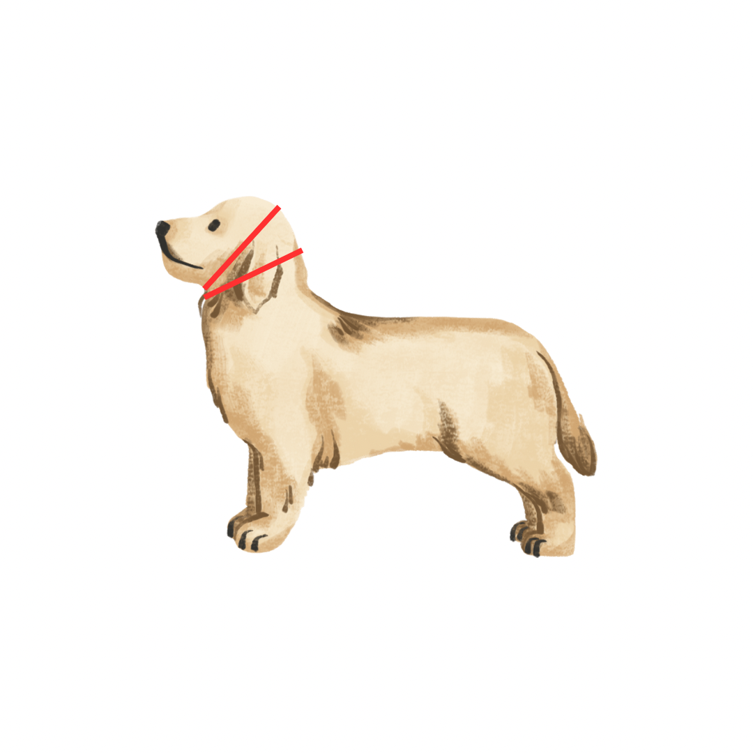 1. Die schmalste Stelle des Halses, direkt unter dem Kopf. So verhindern wir, dass sich das Halsband auf Zug zu stark zuzieht.