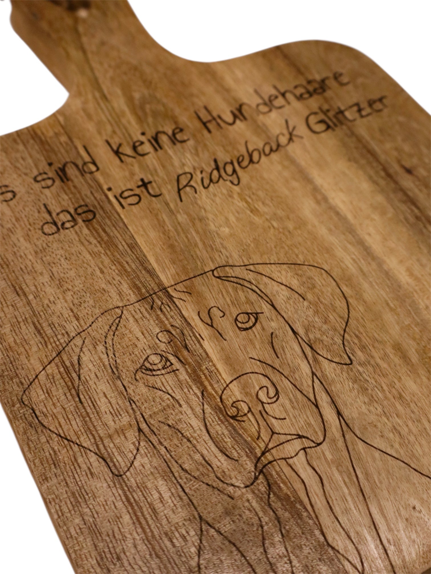 Gefertigt aus hochwertigem Mangoholz und individuell graviert, entsteht ein dekoratives Einzelstück, das sich ideal für Zuhause oder als Geschenk für Hundemenschen eignet.