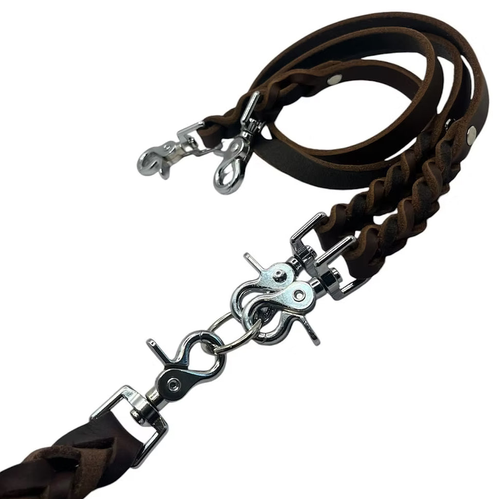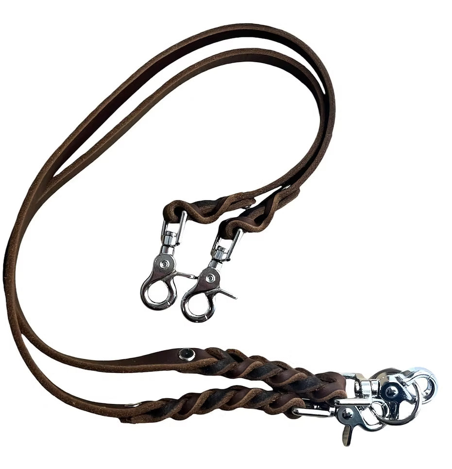 Mit unserer innovativen Doppelleine kannst du zwei oder drei Hunde entspannt und ohne Verheddern an einer einzigen Leine führen. Dank des um 360° drehbaren Karabiners bleibt jede Bewegung des Hundes flexibel und die Leine immer frei von Verknotungen.
