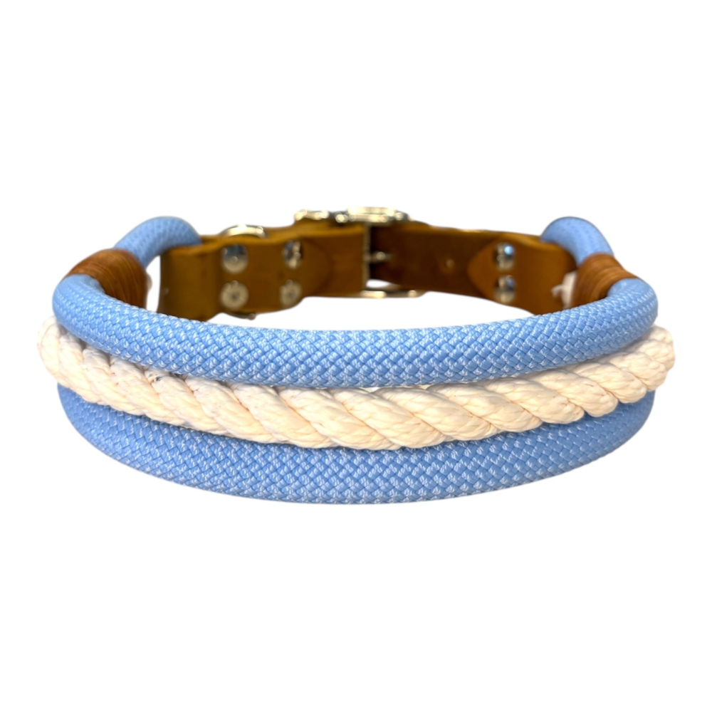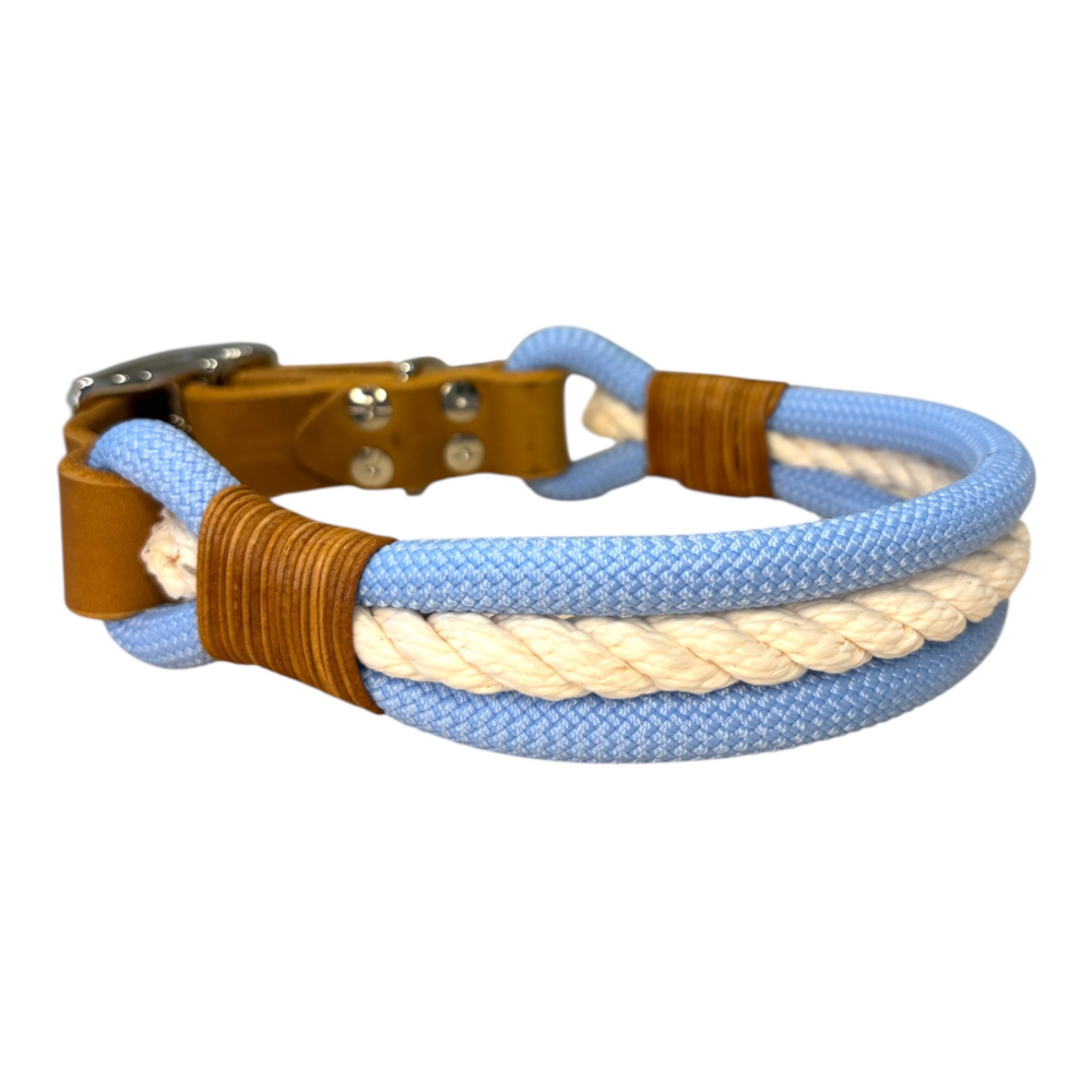 Unser Halsband- und Leinenset 'Marin' in den eleganten Farben Blau & Cognac vereint hervorragende Funktionalität mit einem modischen Look. Dieses Set setzt nicht nur optische Akzente, sondern sorgt auch für höchsten Komfort und Sicherheit bei jedem Spaziergang – für deinen Hund und dich.