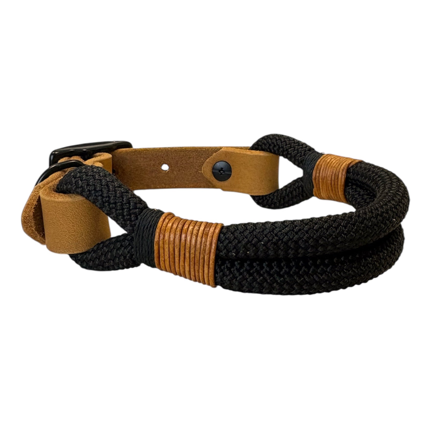 Unser Halsband in der eleganten Kombination aus Tau und hochwertigem Fettleder bietet die perfekte Balance zwischen Funktionalität und modischem Flair. Das wunderschöne schwarze Seil in Kombination mit cognac Fettleder macht dieses Halsband zu einem echten Hingucker für dich und deinen Hund.