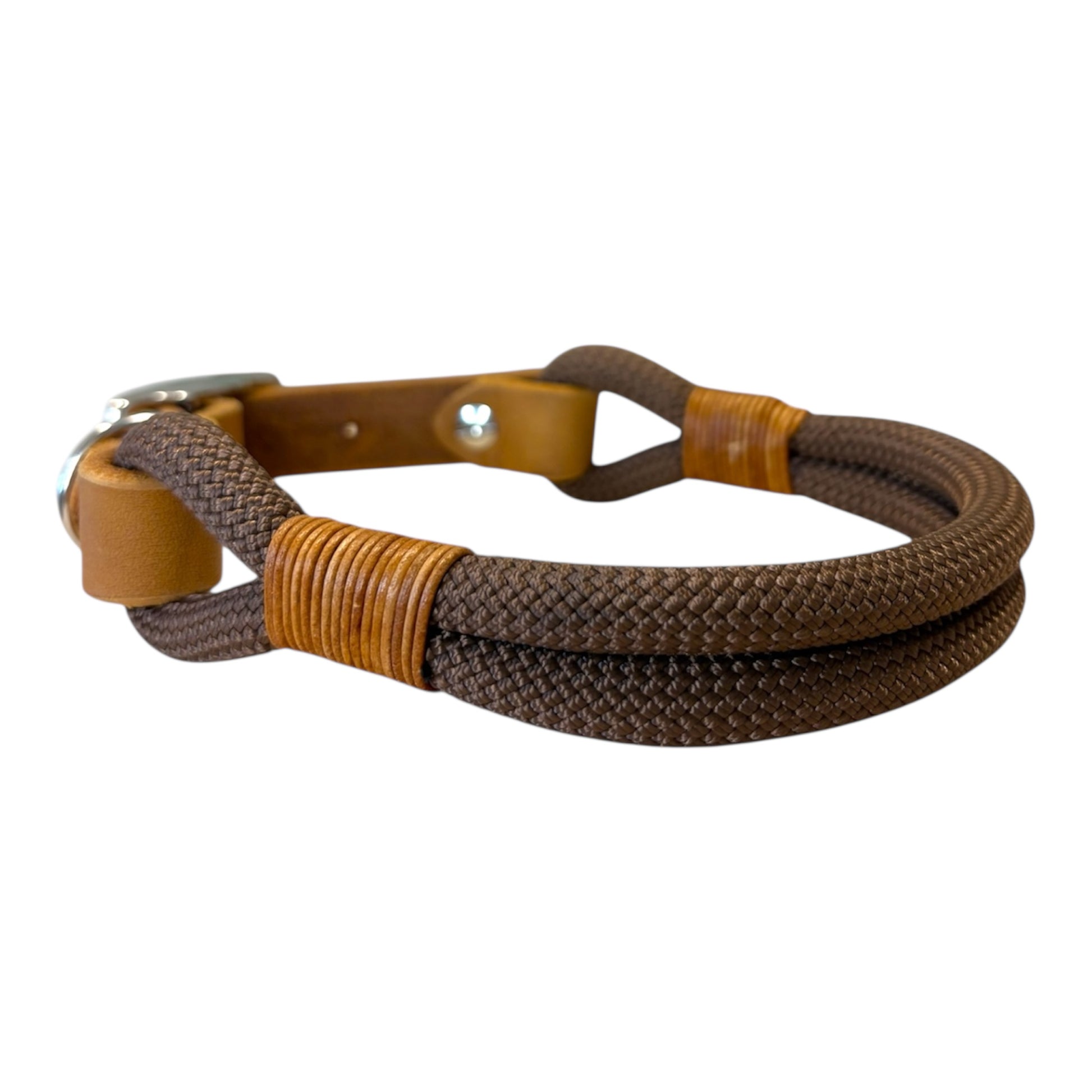 Unser Halsband in der eleganten Kombination aus Tau und hochwertigem Fettleder bietet die perfekte Balance zwischen Funktionalität und modischem Flair. Das wunderschöne braune Seil in Kombination mit cognac Fettleder macht dieses Halsband zu einem echten Hingucker für dich und deinen Hund.