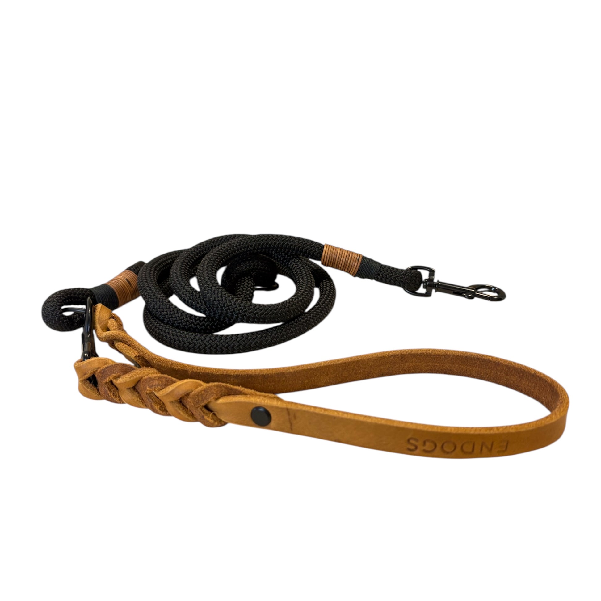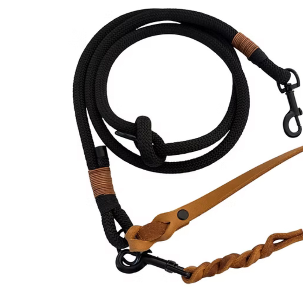 Unsere Kombileine ist die perfekte Mischung aus Stil und Funktionalität – die ideale Wahl für deinen treuen Begleiter. Das wunderschöne schwarze Seil kombiniert mit hochwertigem cognac-Fettleder sorgt nicht nur für einen modischen Look, sondern auch für Komfort und Sicherheit bei jedem Spaziergang.